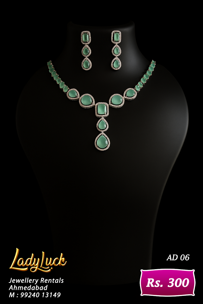 I got a blue stone and diamond necklace and earrings perfectly matching my outfit for my sister's wedding on rent and it was beautiful. The whole experience of renting was smooth and the lady is very cordial in communication. She has a beautiful collection of jewellery. Kudos! More power to you!