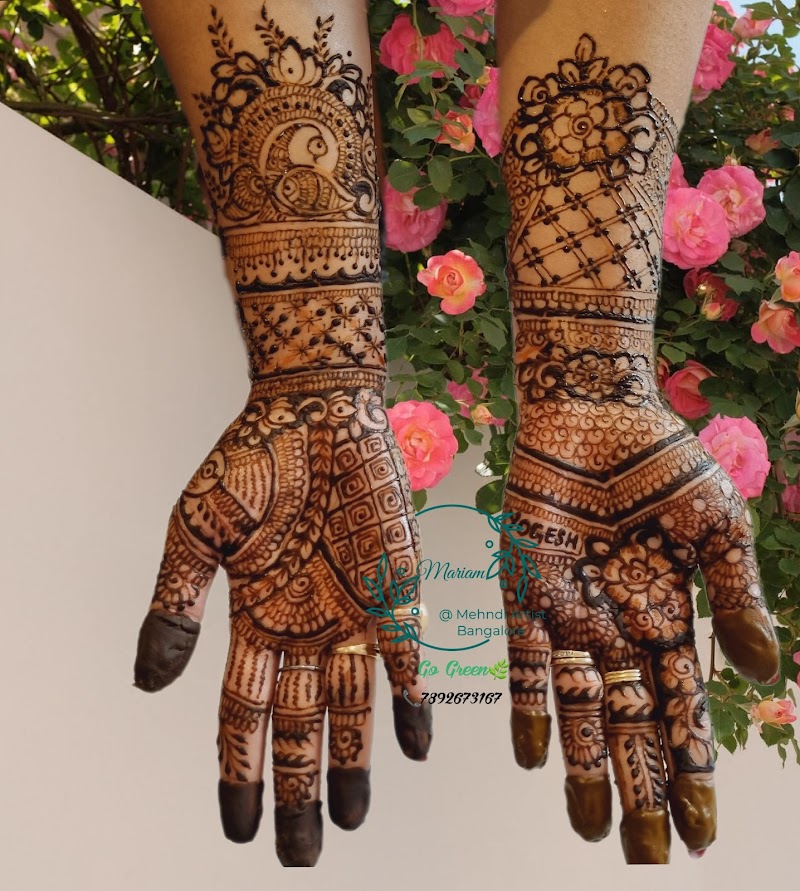 I want to share my real time experience. I have stayed in Bangalore for one day as I was traveling from Bangalore to Kerala and I was new to the city. I just googled near by mehandi artist and connected with mariam. I must say I found the best mehandi artist in Bangalore. She Reasonable prices with best mehandi designs. She is an expert and professional henna artist. I just wanted to say a big thank you for the wonderful henna you did for my best friends wedding. I got a lot of compliments on the mehndi design, colour and the actual look on the day.The best mehandi artist in Bangalore #mariam. Please do visit her if you are near by. #must visit place if you are looking for a beautiful henna designs.