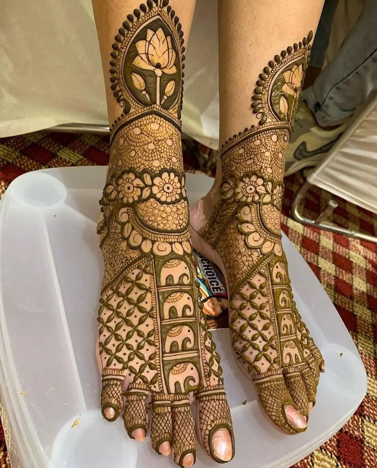 The bridal mehendi service by Monu mehandi arts bhopal covers both hands up to the elbows and feet up to the knees, with the option for additional designs on the arms, back, and neck as per the bride's preference.