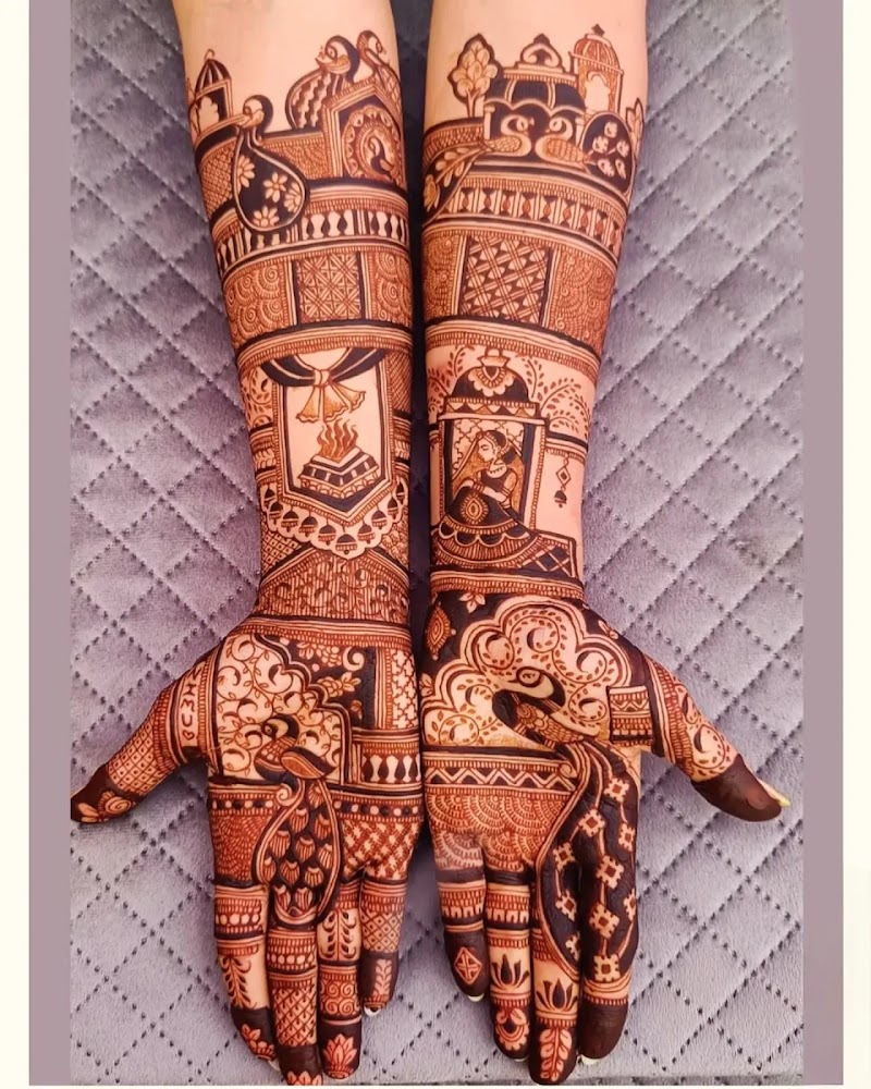 The portfolio of Monu mehandi arts bhopal showcases hundreds of bridal and guest mehendi designs — browse their work to get inspiration and communicate your desired style before your appointment.