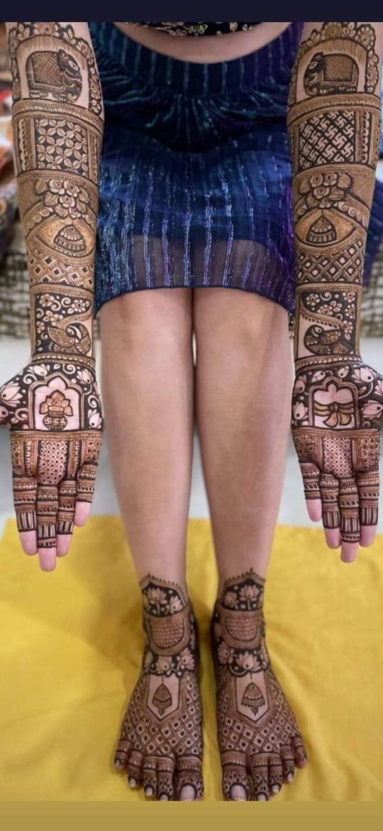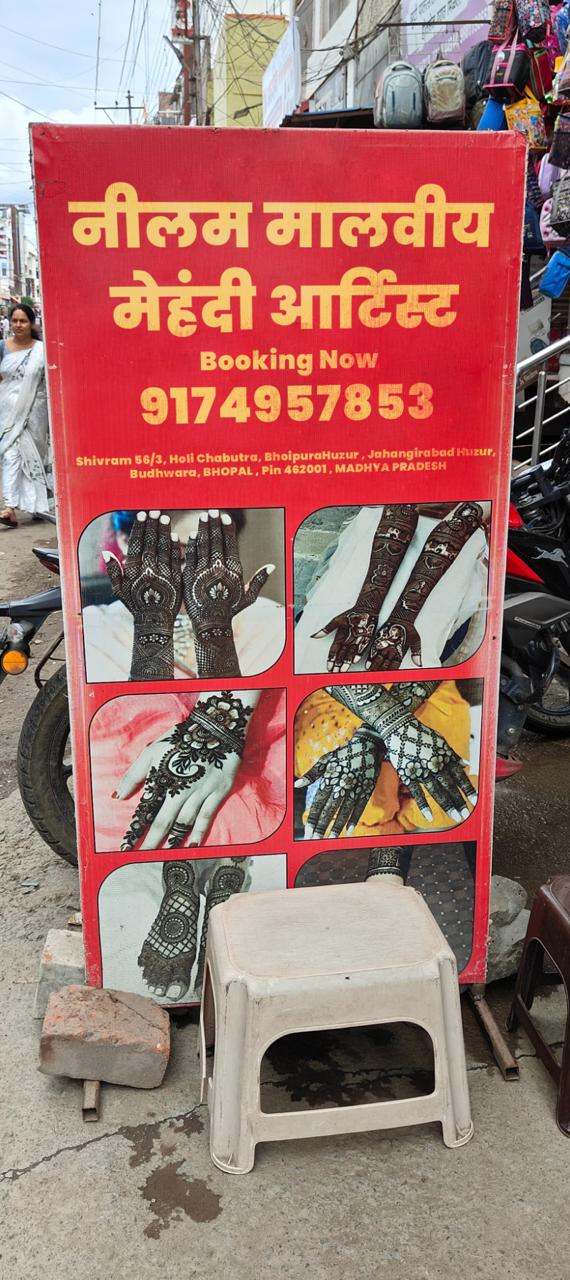 Neelam Malviya Mehandi Artist is a gifted mehendi artist based in Bhopal, celebrated for intricate bridal henna designs that beautifully adorn the hands and feet of brides and their families.