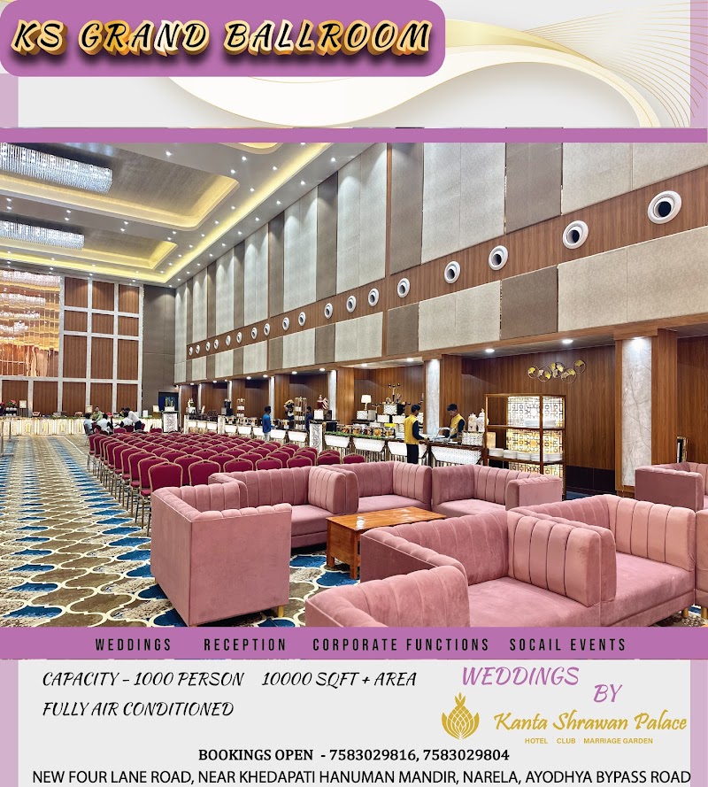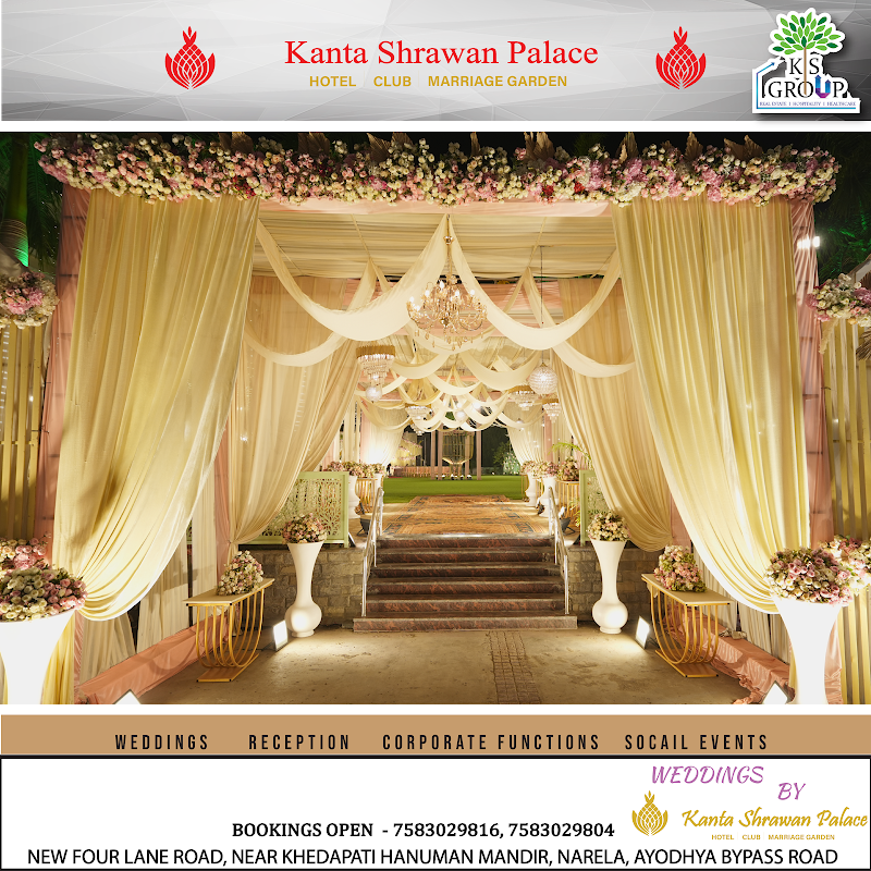 Kanta Shrawan Palace Marriage Garden, located in Ayodhya Nagar, Bhopal, is a well-known venue for weddings and large events. Here's a summary of its features and reviews: 1. Capacity: The venue can accommodate up to 1,200 guests comfortably. It is suitable for weddings, receptions, and other grand ceremonies. 2. Facilities: Offers both indoor and outdoor event spaces, including a lawn and multiple halls. Air-conditioned halls and parking space for around 1,000 vehicles. Provides in-house catering with both vegetarian and non-vegetarian options, along with alcohol availability. 3. Policies: Decor services are offered in-house, and external decorators are not allowed. Music is permitted but not late into the night. Amenities include a complimentary changing room. 4. Location & Accessibility: Conveniently situated approximately 6.2 km from Bhopal railway station, making it accessible for guests. 5. User Feedback: Reviews highlight its spacious setup and good parking facilities. However, the restrictions on external vendors and late-night music could be a limitation for some events.