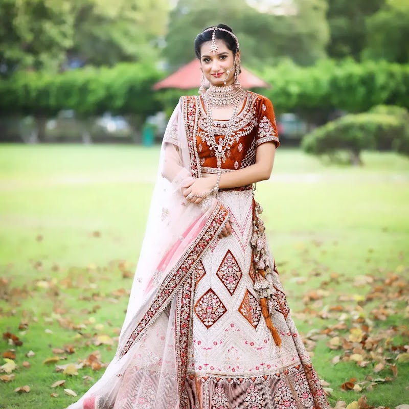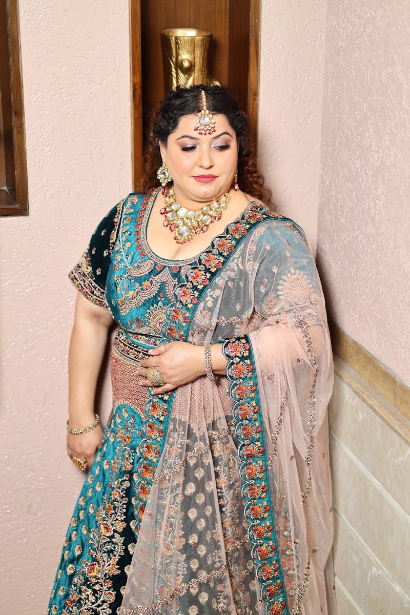 The makeup in this picture is expertly done by Harman Makeup Artist, showcasing a perfect blend of elegance and tradition. The foundation is flawlessly applied, giving a smooth and radiant complexion. The eye makeup is beautifully executed, with well-defined eyes that enhance the overall look. The soft yet bold lip color complements the outfit, adding a regal touch. The contouring and blush are subtle yet effective, giving a naturally sculpted and glowing appearance. The overall result is graceful, sophisticated, and picture-perfect!