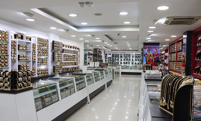 Bridal set starts from 2000 and Ad stone set starts from 1000. They have wide variety of collections at affordable price. Best recommended for Bridel set and Ad stone set. Fancy jewellerys are available starting from 200rs. They didn't have much variety and size of bangles for retail sale. Cheap and best place to buy bridal jewellery and other neck sets