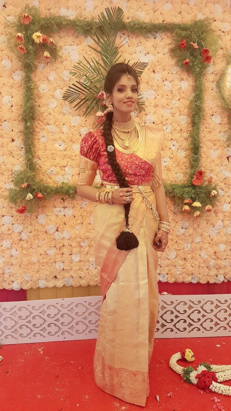 Occasion - Wedding (June 2023) I was in touch with Manimegalai ma'am from 2 months before the wedding date. I did not want to book anyone else but her for the wedding makeover, although this was my first experience with her. Needless to say, she was exceptional! Ma'am was given a task of getting 4 women readied for the occasion, including the bride herself. Ma'am and her team arrived very early in the morning dot on time and completed her services - saree draping, make-up and hairdo for all the 4 of us, with utmost patience, dedication and perfection!The outcome was beautiful! The Bride was no doubt a masterpiece, while the rest 3 were equally fabulous in our looks! Each of us had our own demands and specifications about our make-up and hairdo. And all our needs were perfectly and patiently delivered. Ma'am planned her schedule so well that she completed her services on time without any kind of delay or tension for us, unlike the usual stress and delay that is witnessed in most weddings/reception. The make-up and hairdo lasted the entire wedding and even beyond getting us more and more compliments. Many even inquired about the make-up artist for their future requirements. I happily gave her contact details - After all the credit for our appearance on the 'D' day goes to Ma'am! Thank you wholeheartedly Ma'am, for everything!