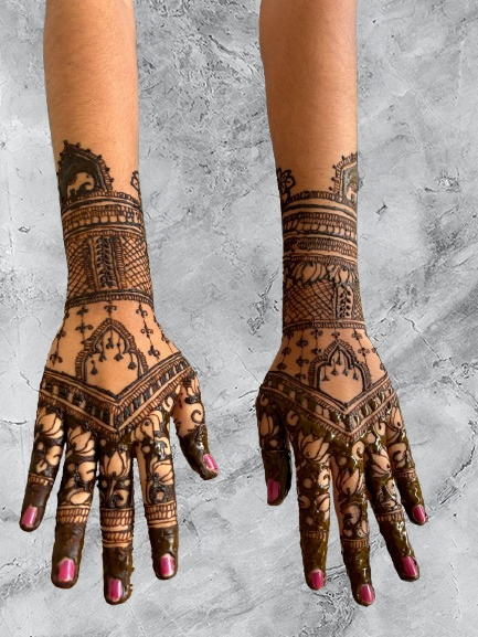 Infinity wings henna art is a gifted mehendi artist based in Coimbatore, celebrated for intricate bridal henna designs that beautifully adorn the hands and feet of brides and their families.