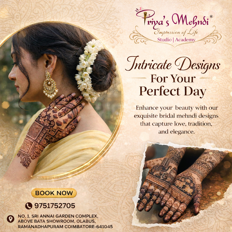 Hi Ma’am and Sir, I am Divya from Namakkal, an online student. Both Ma’am and Sir are very patient and explain the classes in a very detailed way. They always emphasize that to stand strong in any field, your fundamentals must be strong — and they truly help build that foundation. In Priya’s Mehndi Art Class, they make sure we become 100% confident. The techniques taught — like cone handling, pressure control, and how to present our work beautifully — are all extremely useful. Now, I feel confident to handle any design given to me. Thank you so much, Ma’am and Sir!