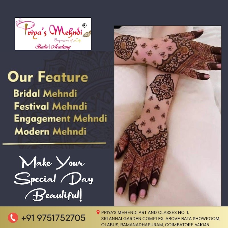 Hi I joined online mehendi class in Priya"s Mehendi Art, the way of approaching and teaching is very excellent with clear explanations, both Sir & Mam's level of patience in handling student is extremely nice, they provide individual attention to me n their way of teaching method is totally different. Rather than teaching how to draw an element, they instruct us to learn cone pressure handling, which helps to design any image without copying but using our own knowledge..... They train students right from cone making to cone handling, teaching from basics to advance design in a comfortable way. Instructors always boost our confidence level....due to lot of personal reasons I couldn't attend classes continously n took a break(when i discussed with them), but they encouraged me to join classes. Thank u Sir & Mam
