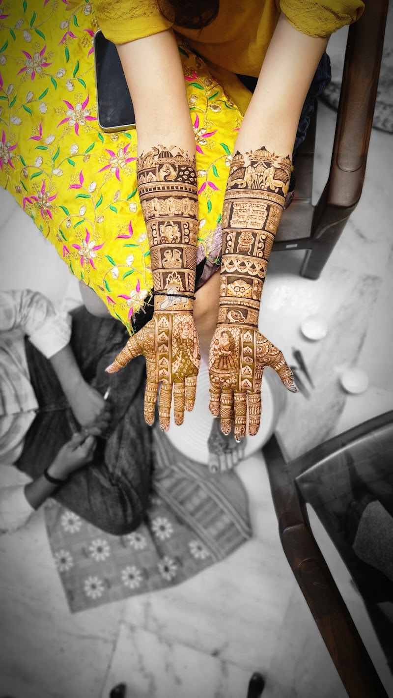 Specialising in bridal mehendi, Ashu Mehandi Arts offers a wide range of design styles including traditional Rajasthani patterns, delicate Arabic designs, modern Indo-Arabic fusion styles, and minimalist contemporary mehendi.