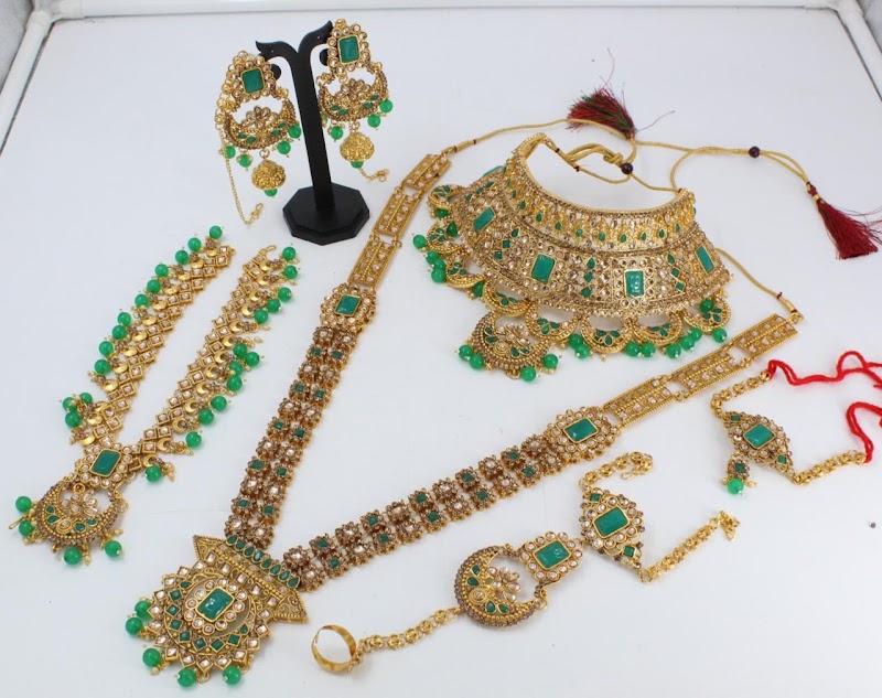 SR Bridal jewellery shop offers a comprehensive range of bridal jewellery — necklace sets, maang tikkas, earrings, bangles, kadas, nose rings, haath phool, kamarbandh, and anklets in gold, silver, and kundan settings.