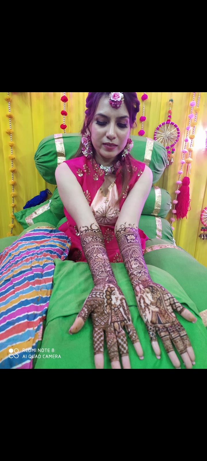Savita Mehndi Artist jaipur is available for home visits and venue applications across Jaipur, bringing all necessary materials and setting up a comfortable, relaxed environment for the mehendi ceremony.