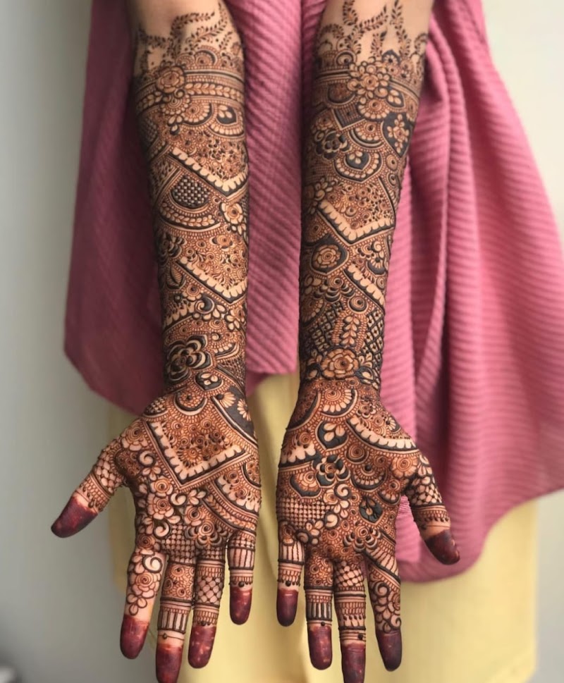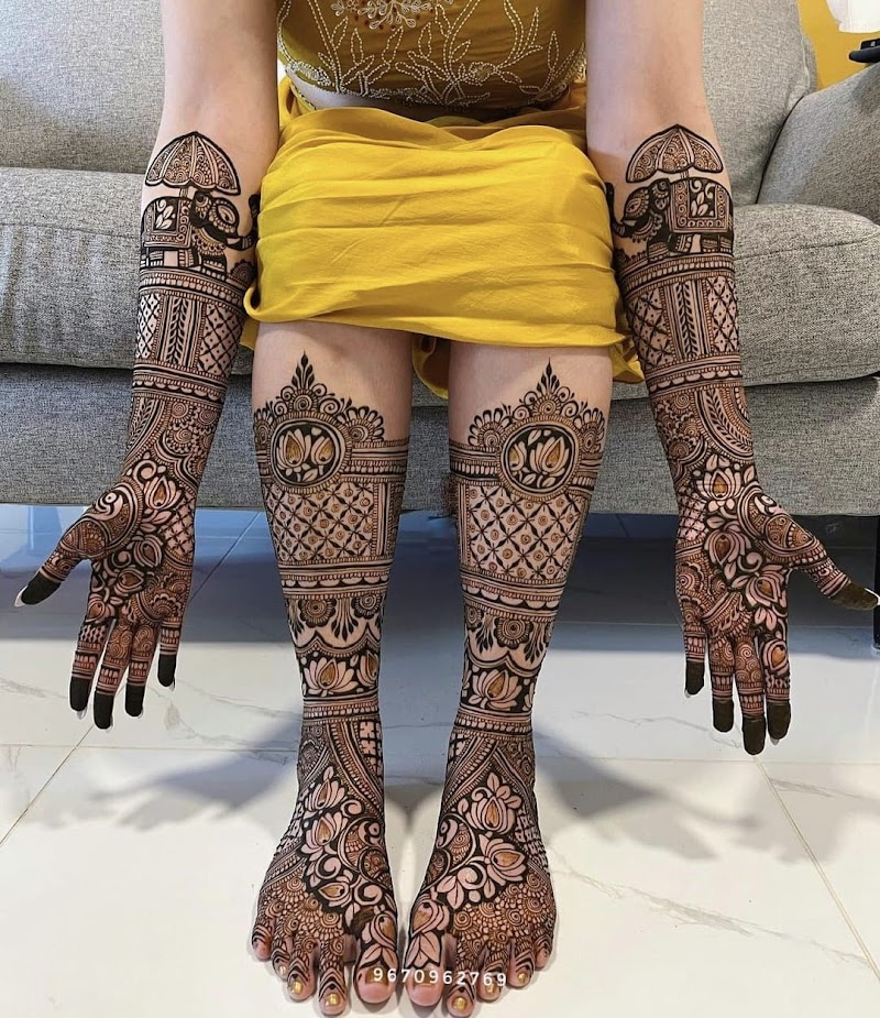 Specialising in bridal mehendi, Mehandi Hub offers a wide range of design styles including traditional Rajasthani patterns, delicate Arabic designs, modern Indo-Arabic fusion styles, and minimalist contemporary mehendi.