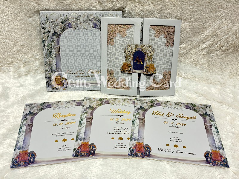 Gemini cards had a beautiful wedding card collection. They have a lot to choose from and very different and pretty invitations. Through their website I immediately liked one card very much and with whatsapp I got good information. When I went to the store in Mumbai (during my wedding-shop-vacation) they really took their time to show A LOT. In the beginning they say that everything is possible, but when I decided what I wanted after a time of negotiating they told me that it was not possible within the time I stayed in India. So that seemed like a waste of a lot of our time. Eventually they told me that they will arrange it. After, they really took seriously that the text in Dutch would be without spelling mistakes. And they give me enough time to check it. Eventually I picked up my wedding cards and they looked amazing. Like 5% of the cards were a bit off (nothing big) and the price that I paid for it was very acceptable for Dutch standards.
