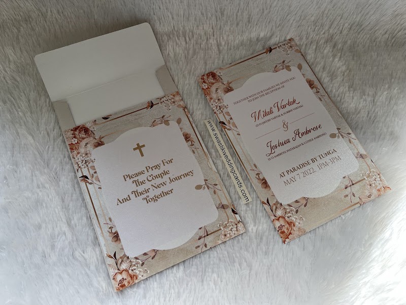Great collection and affordable prices! We bought our wedding cards last month and took them with us, everything was arranged and printed within 5 days.. Best service in Mumbai!!! Thank you a lot and love from Amsterdam (Michael & Risha)