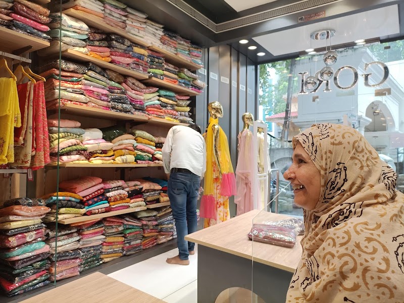 Modern Ambiance & Prime Location Located in the bustling textile hub at 4/2327, Talavdi Sheri, near RKTM, Gori Suits offers a refreshing and modern shopping experience. As seen in the images, the store features a sleek glass facade and well-lit interiors with plush grey seating, creating a comfortable and inviting atmosphere that stands out in the busy market area. β The outlet boasts an impressive variety of womenβs apparel, catering to every occasion. From the racks filled with colorful daily-wear kurtis to the mannequins displaying heavy designer lehengas and party wear suits, the collection is extensive. They seem to specialize in a mix of traditional Bandhani prints and contemporary cuts, ensuring there is something for every taste. β The fabric quality at Gori Suits is a standout feature. Whether it is the breathable cottons for casual wear or the rich, textured silks and georgettes for festive occasions, the materials feel premium to the touch. The customer in the image holding a cream suit with gold detailing highlights the store's focus on elegant, high-quality textiles. β The readymade garments reflect superior craftsmanship with a focus on durability and fit. The stitching is neat, with clean hemlines and secure embroidery work that speaks to their "designer" label. The apparel is tailored to provide a flattering silhouette, avoiding the common sizing issues found in standard ready-to-wear outfits. β Despite the boutique feel, the pricing remains reasonable, offering true value for money. They strike a balance between "affordable luxury" and high end exclusivity. With helpful staff and a wide range of price points, Gori Suits is a highly recommended destination for anyone in Surat looking for quality designer ethnic wear.